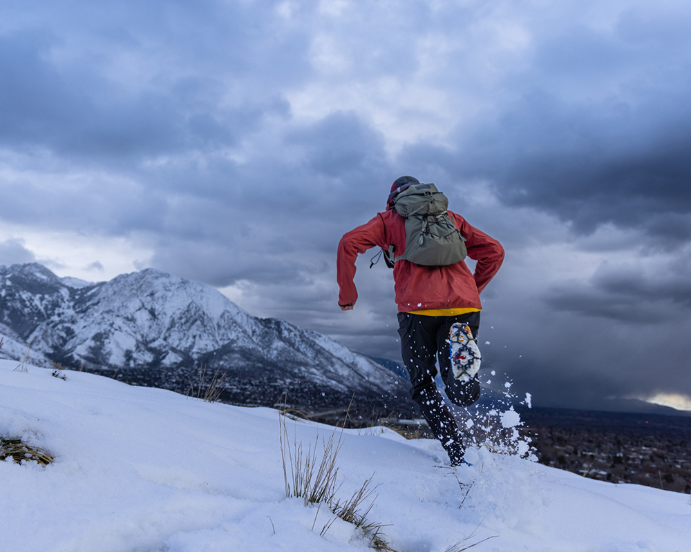 Built for winter running and hiking across a variety of surfaces, EXOspikes™ footwear traction delivers confident performance on snow-packed trails, icy roads, and everything in between. Twelve tungsten carbide spikes per foot bite into ice and resist wear from pavement, rocks, and other abrasive surfaces. A rugged TPU traction matrix combines toughness and flexibility to maintain grip on uneven terrain.